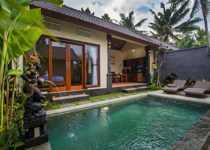 De gesitueerde in Ubud Pondok Buda Merta 2 Ubud ligt op 4 km van de Goa Gajah (Olifantengrot) en beschikt over een zonneterras met uitzicht op het zwembad. De villa bevindt zich in de Penestanan wijk van Ubud en biedt een zwembad om bij te ontspannen.